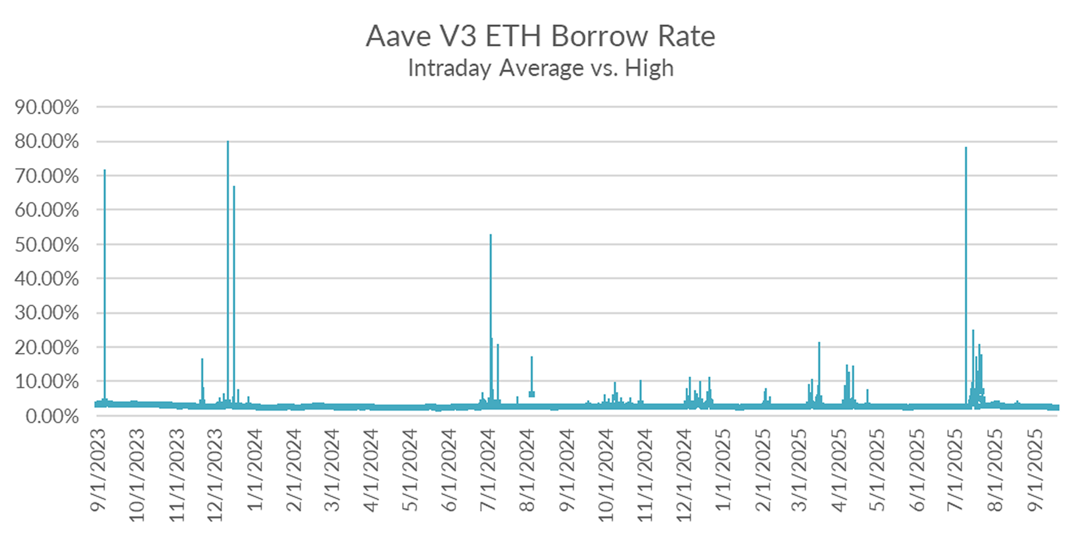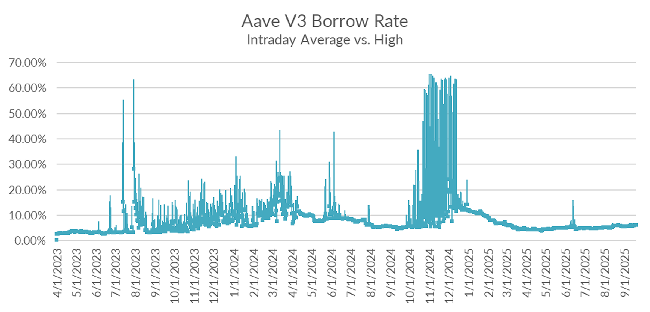 As we’ve seen throughout the year, intraday volatility on Aave has remained subdued. But with utilization approaching the kink for the first time since Q4 of 2024, things might start to get interesting.