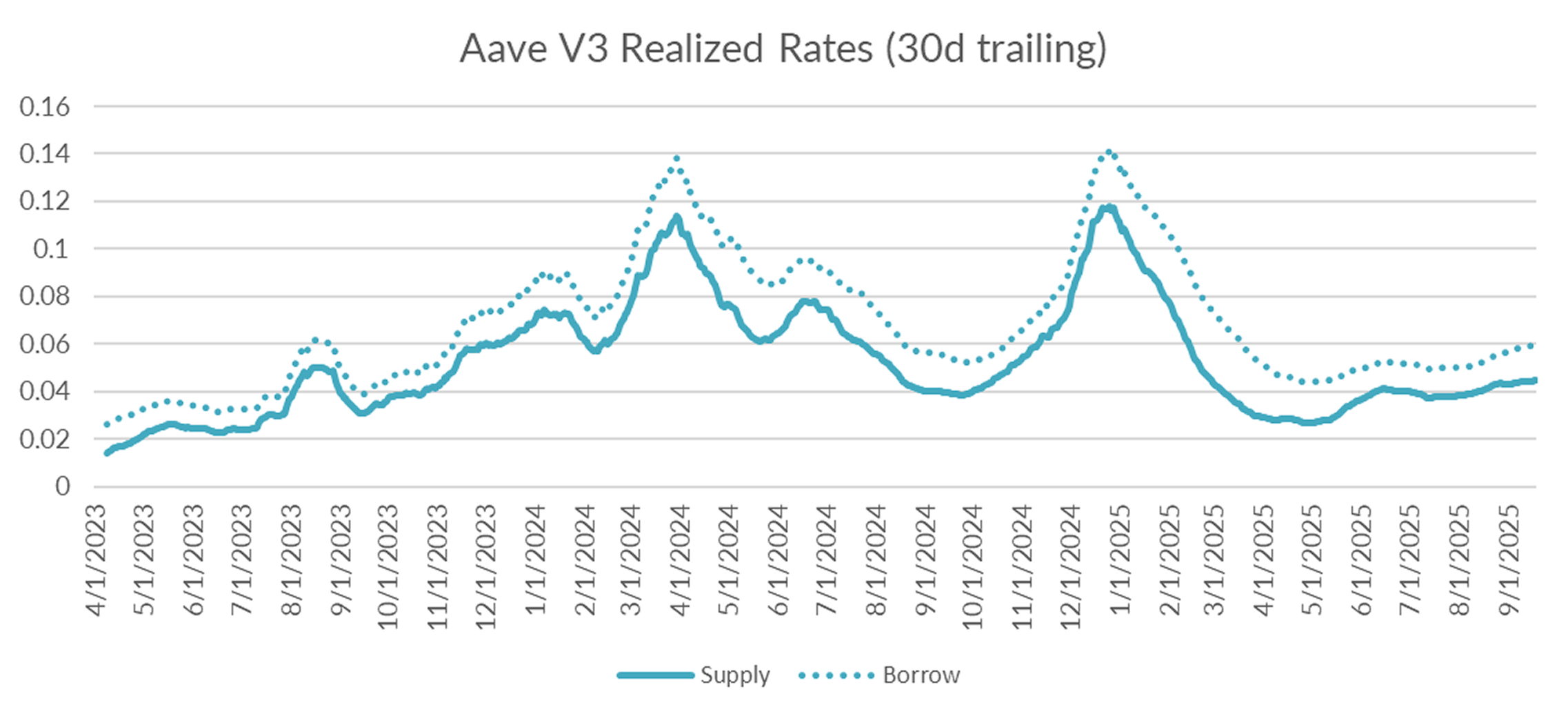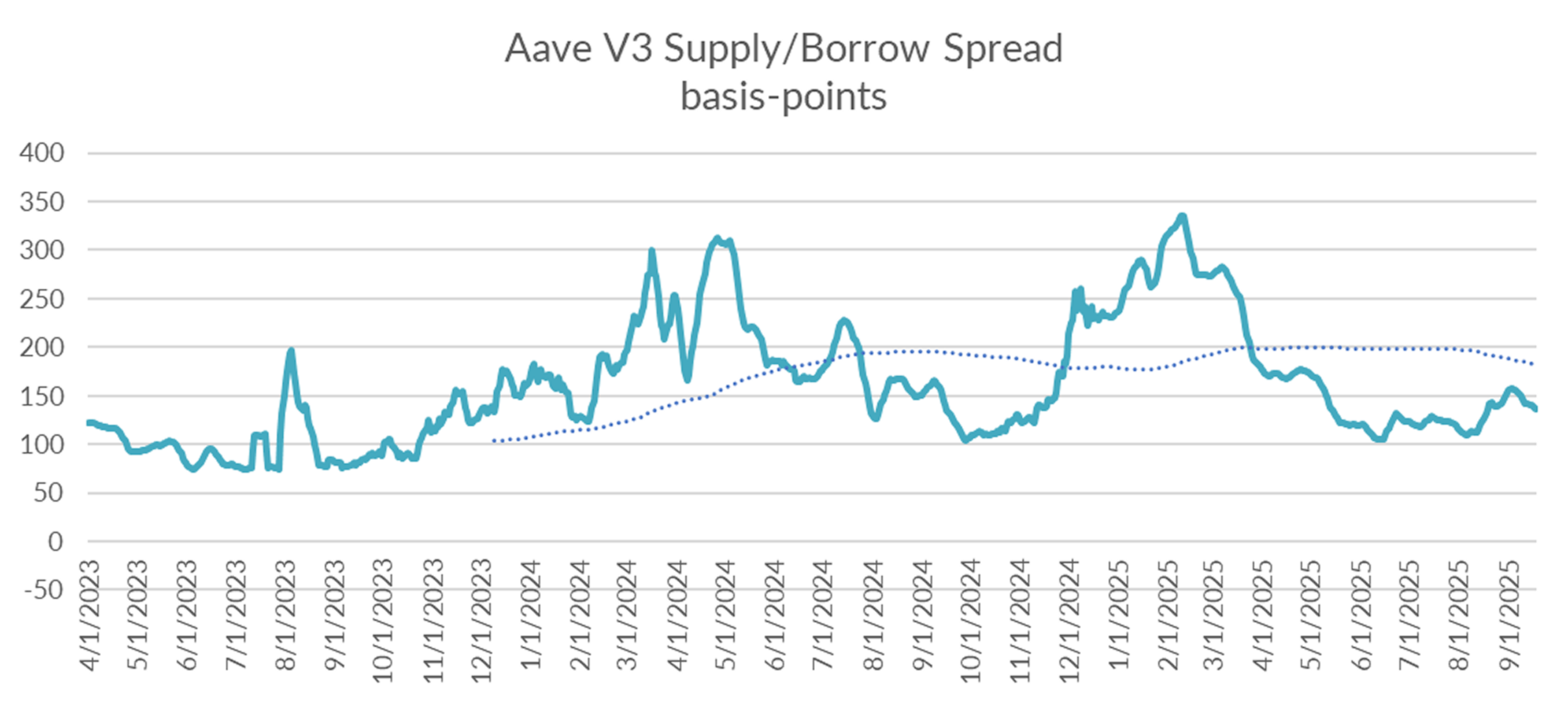 And with rising utilization, supply/borrow spreads on Aave are continued to tighten.