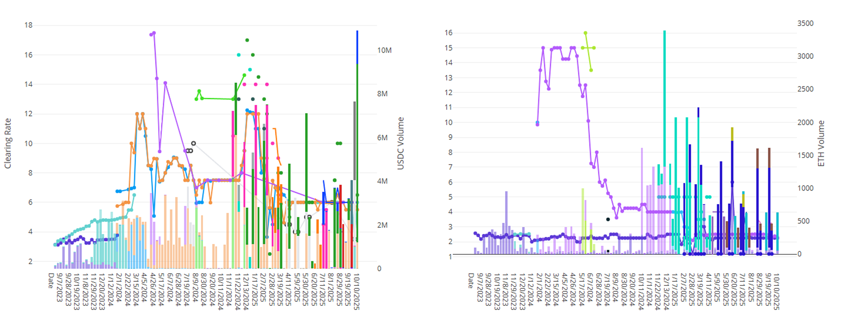 Term cleared ~11M in stablecoin loans and over 900 ETH this week — a record for Term. On the stablecoin side, Term cleared over 8M against PT-sUSDE on Plasma with the remainder split between Mainnet and Avalanche against blue-chip collateral. On the ETH side, a sizeable chunk of superETH loans rolled at 4.00% offering strong risk-adjusted APRs in excess of the ETH staking rate.