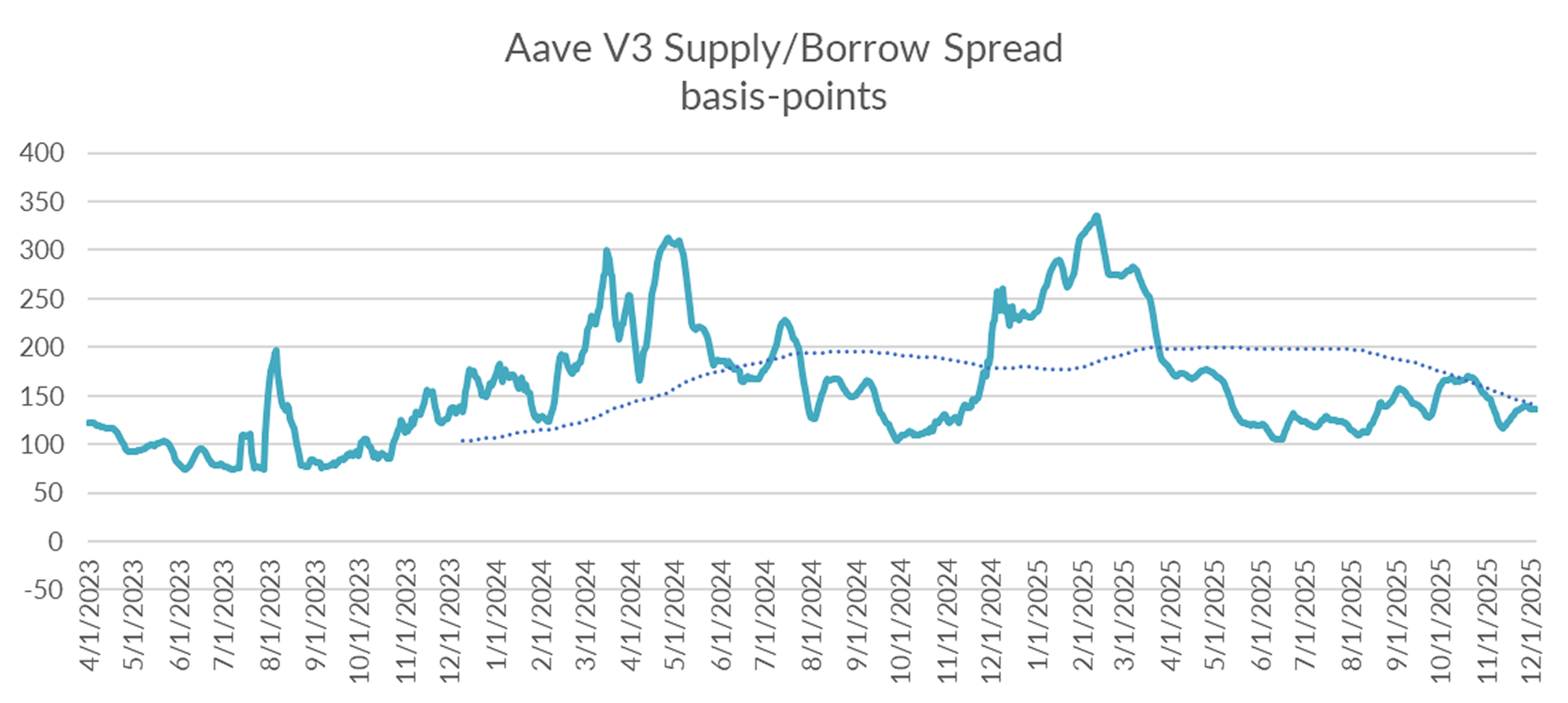 With utilization back down to 73%, expect the supply/borrow spread to rise back toward historical averages of +150%.